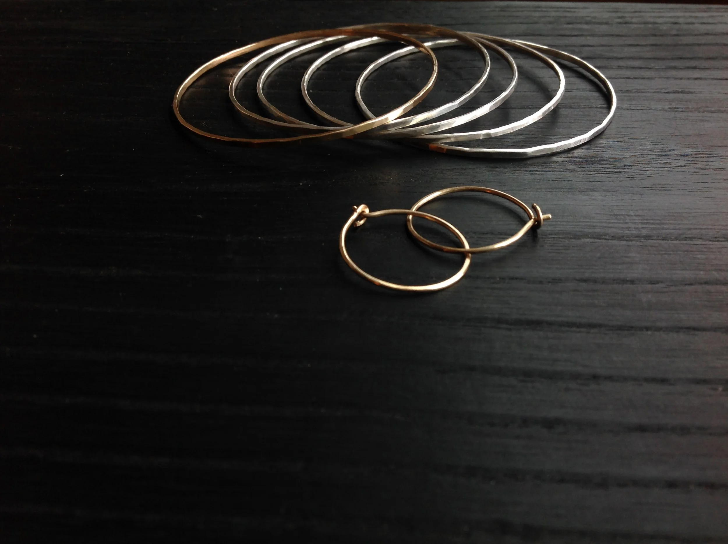 These hoop earrings are forged from fine round wire with slight hammer texture to catch the light. Lightweight and strong, these hoops are perfect for everyday workwear, whether you’re in a classroom, machine shop, garage or grocery store.